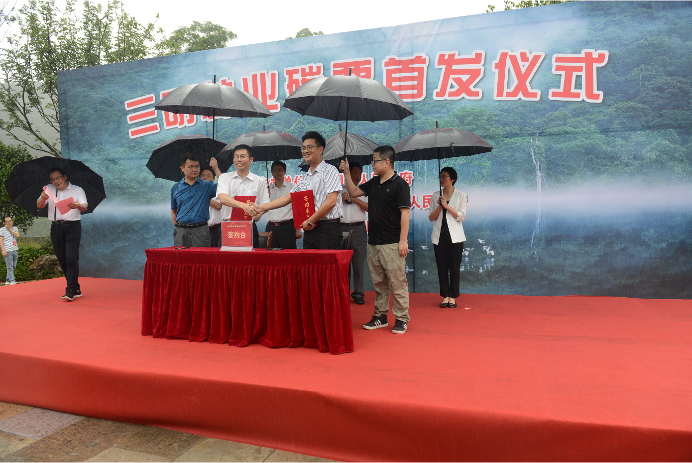 5月18日,全國首批三明林業碳票在將樂縣高唐鎮??诖逯鲿龀晒εe行首發儀式,完成林業碳票碳減量首單交易。公司收儲了首批三明林業碳票項目碳減排量18294噸二氧化碳當量,價值18.29萬元。